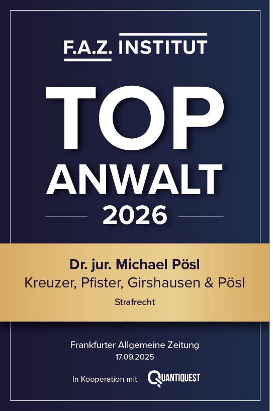 2025 | Verleihung Auszeichnung „Top Anwalt 2026“ durch das F.A.Z. Institut zusammen mit Quantiquest im Bereich Wirtschaftsstrafrecht |